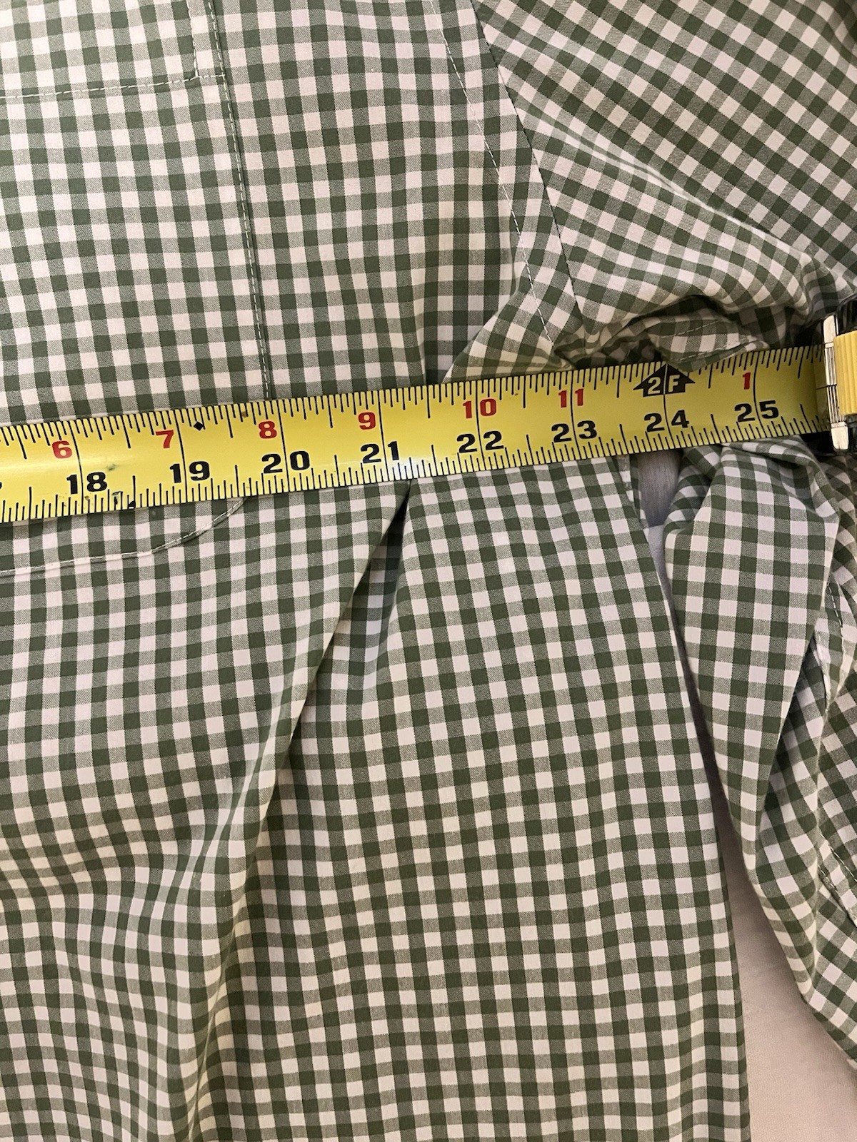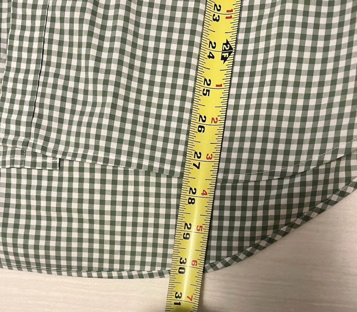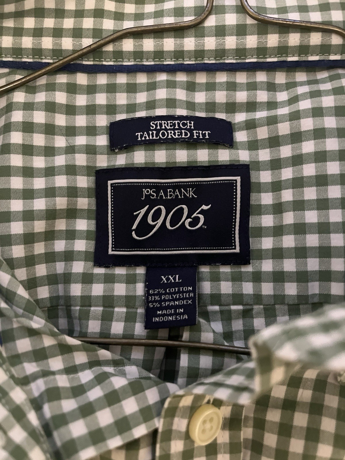 The Jos. A. Bank 1905 Men's Long Sleeve Shirt in Green Plaid Stretch Tailored Fit is a stylish and versatile button-up shirt perfect for a variety of occasions. Made from a blend of polyester and cotton, this slim fit shirt features a collared neckline, long sleeves, and a button closure for a polished look. With a regular size fit in 2XL, this machine washable shirt is designed for comfort and breathability, making it suitable for travel, casual wear, or any season of the year.