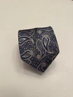 Jos. A. Bank Signature Gold men’s necktie made from 100% silk. Features an elegant blue and silver paisley with geometric medallion design. In excellent like new condition- no stains, holes, or flaws. Fast shipping!