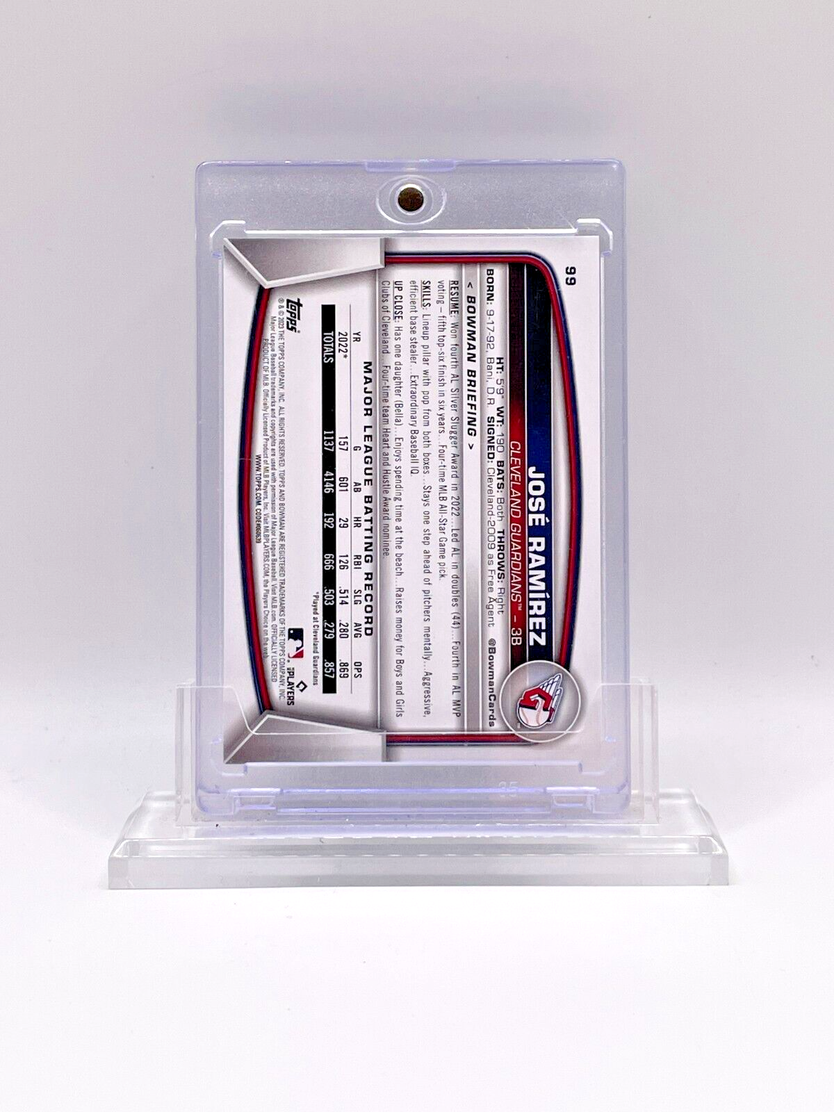 Item Name: Jose Ramirez 2023 Bowman RARE #/125 LIGHT BLUE CLOUD PARALLEL SP - LEGEND! Seller Location: United States Note: This card will be shipped in a penny sleeve inside of a toploader and protected with corrugated cardboard