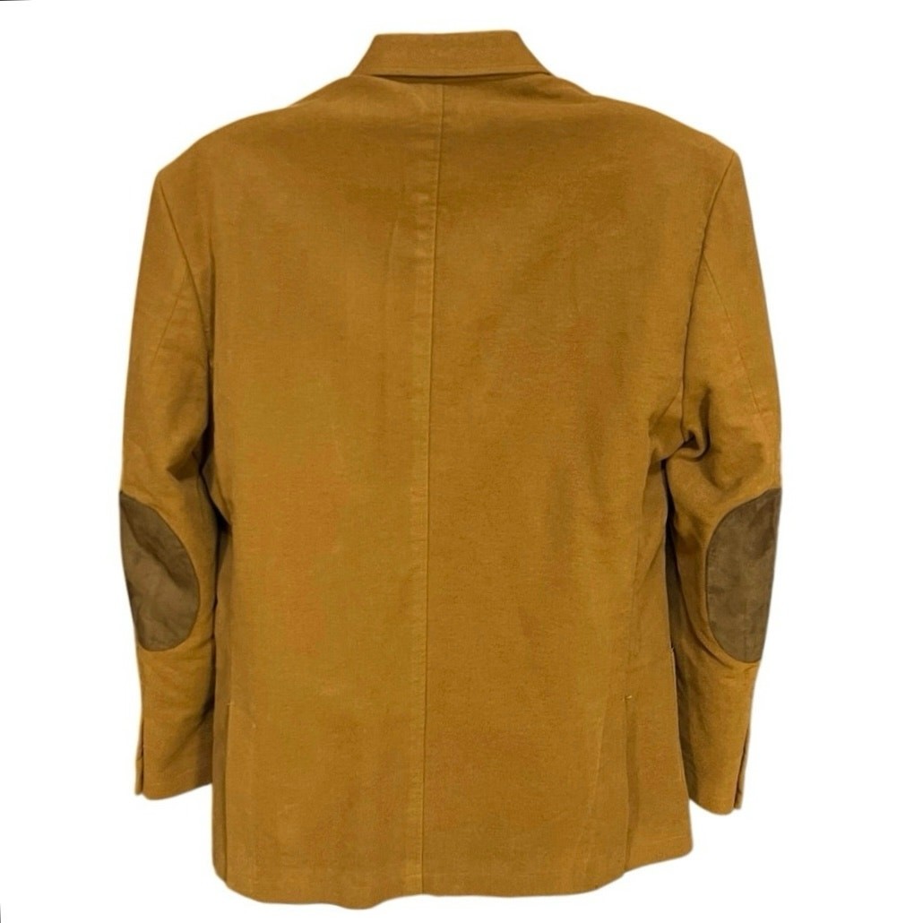 Joseph Abboud Camel Two Button Front Elbow Patch Cotton Blazer Size XL Excellent preowned condition Camel color Elbow patches Two button closure Interior/exterior pockets Double vent Shell: 100% cotton Lining: 65% polyester / 35% cotton Approximate Measurements (taken laying flat): 23in across the chest 29.5in from shoulder to hem All items are cleaned prior to listing Reasonable offers accepted Bundle and Save!! ***Shipments go out daily, Monday-Friday*** Classic Academia Professor Business Casual Preppy