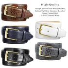 Description 35mm(1 3/8") Wide Solid Brass Antique Brass Finish Buckle. Men's Dress Belts, available in sizes from 32" to 54". 7 Belt Holes at the tip end for size adjustments. Supple Italian Calfskin Leather fully lined with Genuine Leather. Belt is measured from where the leather folds by the buckle to the middle hole at the tip end. Take a measurement of a belt that you currently wear and measure from where the leather folds by the buckle to the hole that fits the best. That number in inches is your belt size. 35mm(1 3/8") Wide Solid Brass Antique Brass Finish Buckle Men's Dress Belts, available in sizes from 32" to 54" 7 Belt Holes at the tip end for size adjustments Supple Italian Calfskin Leather fully lined with Genuine Leather Belt is measured from where the leather folds by the buckle to the middle hole at the tip end. Take a measurement of a belt that you currently wear and measure from where the leather folds by the buckle to the hole that fits the best. That number in inches is your belt size.