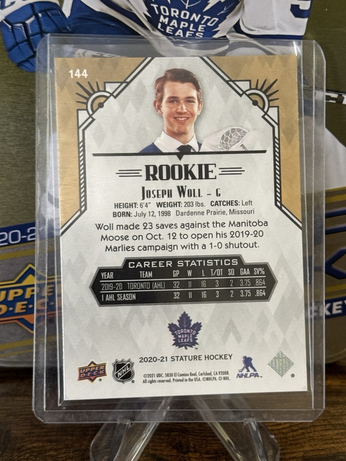 Joseph Woll's 2020-21 Upper Deck Stature Green Rookie #144 /175 trading card is a must-have for Toronto Maple Leafs fans and collectors. This limited-edition card features a serial number, making it a rare find for any sports memorabilia enthusiast. With its vibrant green design and the player's rookie status, this card is sure to be a standout addition to any collection.