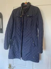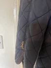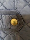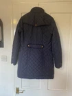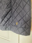 Crafted by Joules, the Fairhurst Quilted Jacket is a versatile addition to any wardrobe, blending functionality with style. The jacket comes in a sophisticated navy blue, accented with elegant brass snap buttons and a tasteful quilted stitching pattern. It's designed to be a practical choice for various occasions, from casual outings to travel and even workwear. In a comfortable mid-length, the jacket features a durable polyamide outer shell with a 100% cotton lining for breathability and warmth. The long sleeves, zip and button closure, and corduroy trim all contribute to the coat's resilience and style. It's machine washable, making it a low-maintenance option for those with busy lifestyles. Available in size 12, this jacket is perfect for transitioning through seasons, ready to accompany you on dog walks or country strolls. It has been well used but still has plenty of life left. On the last photo I am showing a tiny hole that may need 1 small stitch to fix đ It was photographed straight from storage and will be washed before sending. Having a coat & jacket clear out so do check out my other offerings đ Many thanks for looking.