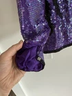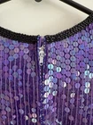 The Judith Ann Creations silk beaded sequined top is a stunning statement piece. 70s 80s Purple and black geometric pattern Asymmetrical hem No size tag but approximate small/medium. Please see measurement photos
