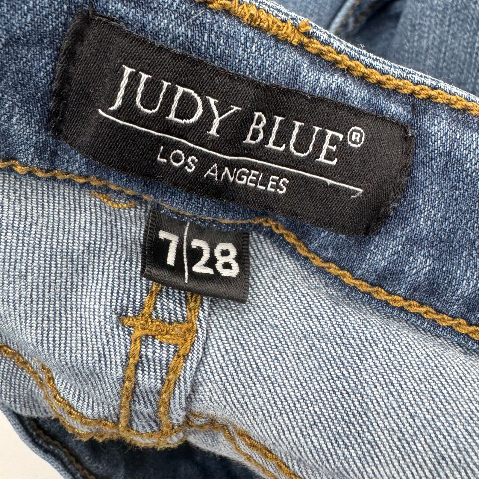 Judy Blue Jeans Womens 7 / 28 (29x30 ACTUAL) Bootcut Blue Stretch Denim Intentional Whiskering Very good condition, see all pictures for views. •Waist: 29" Has some stretch •Inseam: 30" •Rise: 8" Thank you for your purchase, we appreciate you!