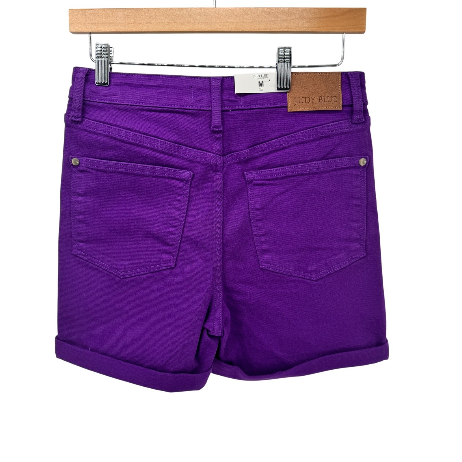 Style: Jean Shorts Size: M Department: Women Size Type: Regular Inseam: 3.5 in Garment Care: Hand Wash Only Color: Purple Brand: Judy Blue Model: Judy Blue Garment Dyed High Waist Material: Cotton Blend Rise: High (Greater than 10.5 in) Accents: Logo Waist Size: 28 in Fabric Type: Denim Features: Pockets