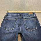 Pre-owned jeans with light overall wash wear and mild fabric rubbing / pilling at the inner thighs. Denim is clean and intact without stains or holes, and all seams, zipper, button, and pockets are secure and functional. Brand: Judy Blue. Style: Womens skinny fit jeans with slim legs and classic five-pocket design. Size on tag: 9/29 (womens). Color: Dark blue denim wash with subtle whiskering and fading at the thighs. Material: 93% cotton, 6% polyester, 1% spandex stretch denim. Details: Mid-rise waist, zip fly with single button closure, belt loops around waistband, front scoop pockets with coin pocket, and stitched back patch pockets with contrast topstitching. Features: Slim, stretchy fit for comfort, versatile dark wash suitable for everyday wear, and skinny legs that pair well with boots or sneakers. Branding: Judy Blue Los Angeles woven label inside waistband, Skinny Fit label, size flag at the front, and Judy Blue logo patch at the back waistband. Tags and codes: Interior care tag lists Style# JBB2410DK, Size 9/29, fabric content 93% cotton/6% polyester/1% spandex, and Made in Vietnam. Special notes: Pre-owned jeans with light general wash wear and mild fabric rubbing at the inner thighs; denim, seams, zipper, button, and hems are clean, intact, and fully functional.