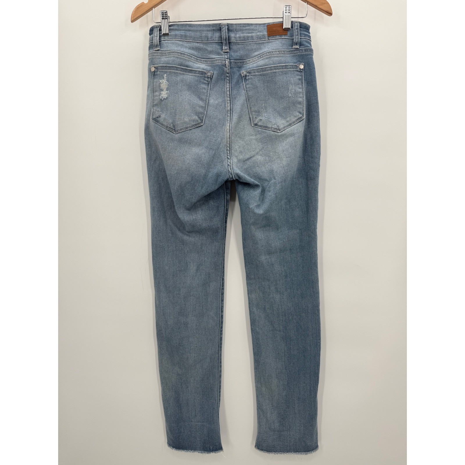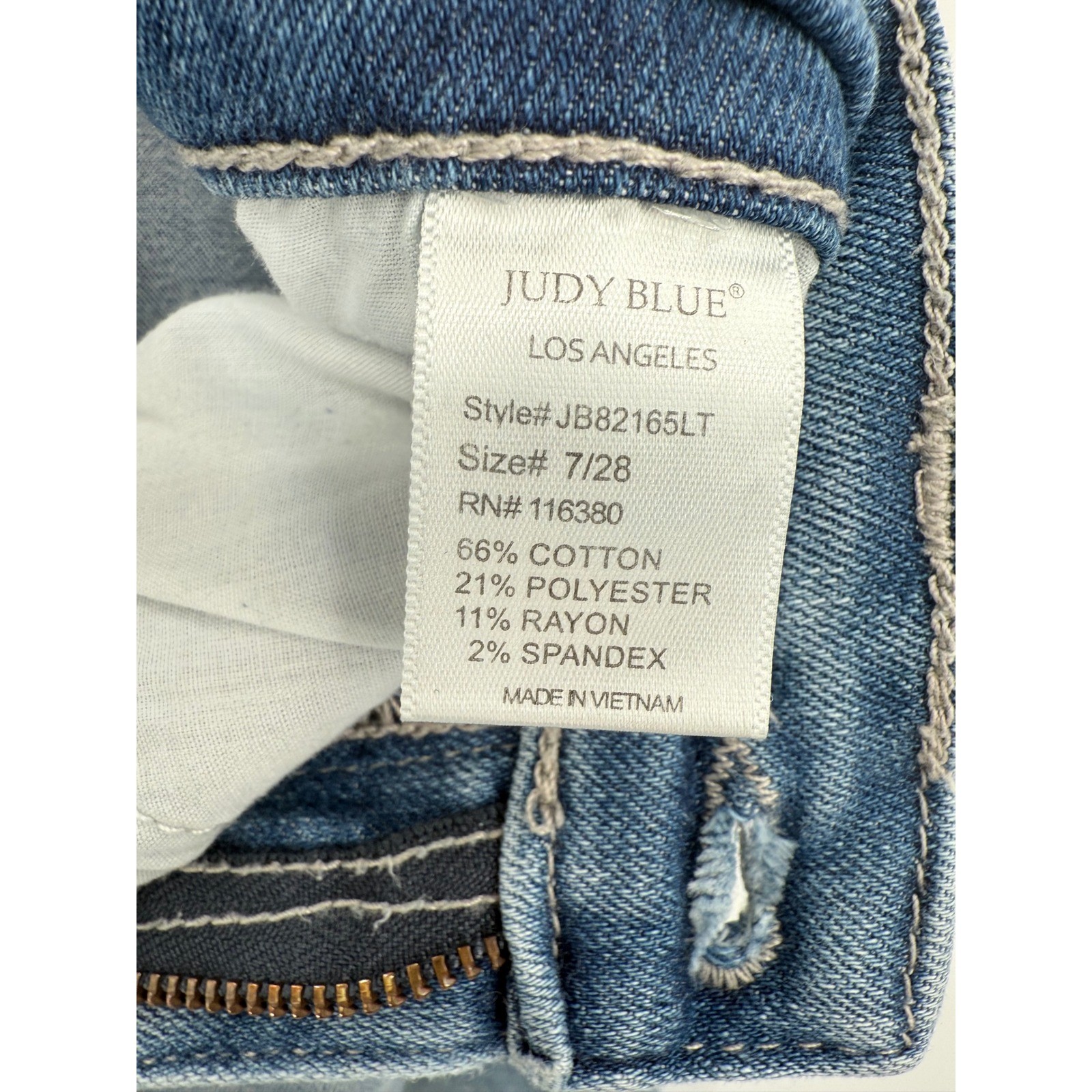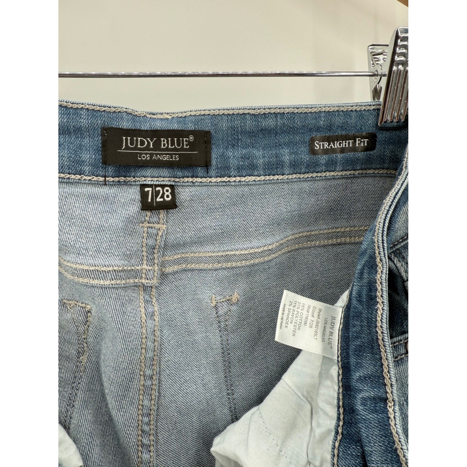 Straight fit light wash denim jeans with distressed detailing. These jeans offer a comfortable and stylish silhouette perfect for everyday wear. The unique distressing adds a touch of edge to a classic design, making them a versatile addition to any wardrobe. They feature a classic five-pocket styling with a zip fly and button closure. Style: Straight Department: Women Fabric Wash: Light Waist Size: 28 in Accents: Button, Zipper Type: Jeans Features: Distressed, Stretch, Comfort Fit: Classic Pattern: Solid Fabric Type: Denim Material: Cotton Blend, Polyester, Rayon, Spandex Closure: Zip, Button Keywords: Judy Blue Jeans, Women's Jeans, Straight Fit Jeans, Light Wash Denim, Distressed Jeans, Size 7/28 Jeans, Casual Jeans, Everyday Jeans, Trendy Jeans, Fashion Denim, Button Fly Jeans, Comfortable Jeans, Stylish Jeans, Denim Pants