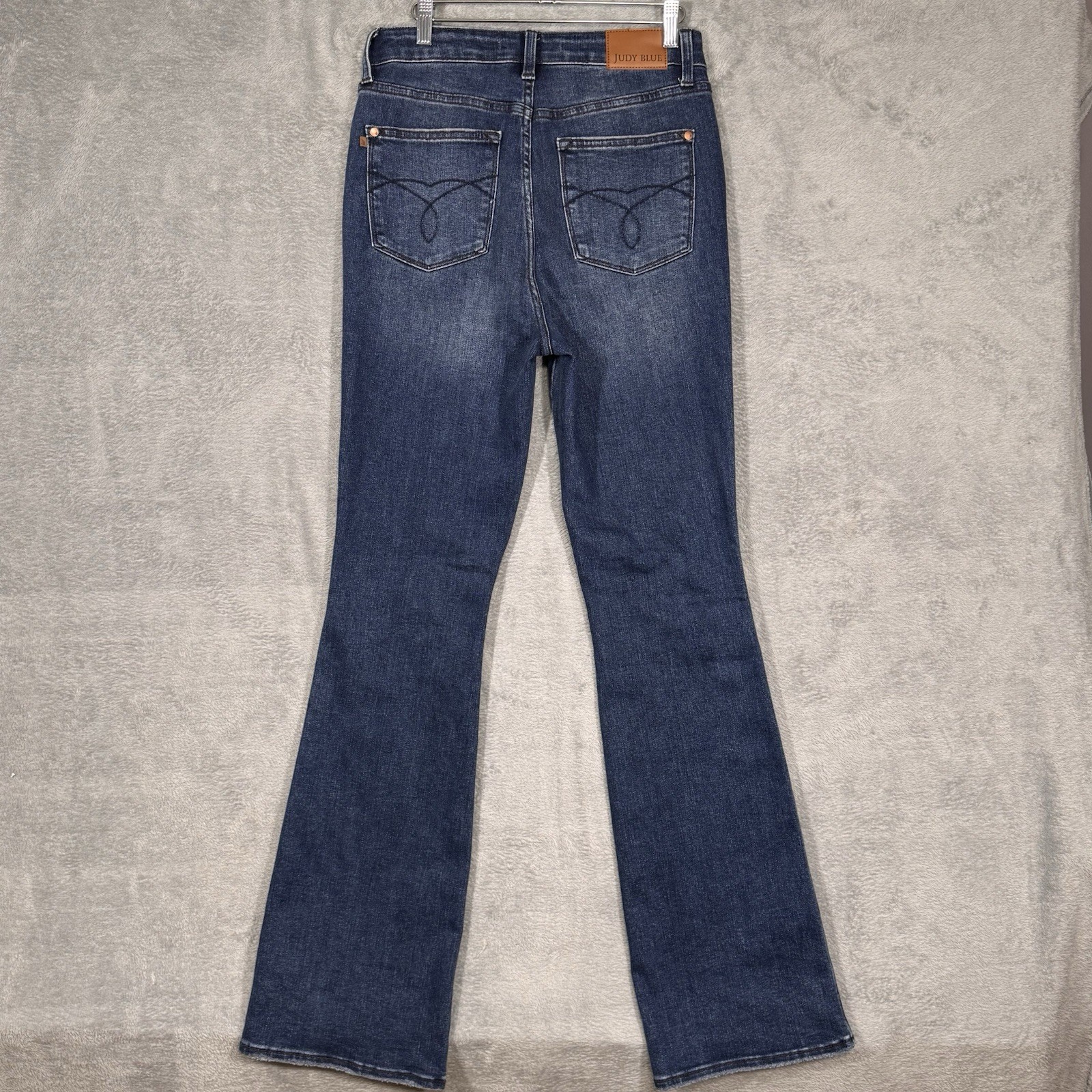 Judy Blue women’s bootcut jeans in dark wash stretch denim. Mid-rise fit with subtle fading, classic 5-pocket style, and clean hems. Long inseam version with comfortable stretch. No holes or stains noted. See photos for details and measurements. ⸻ MEASUREMENTS (laid flat): Waist: ~15” Rise: ~11” Inseam: ~34” Leg opening: ~9.5” ⸻ SIZE TAG: Women’s 7 / 28 Long ⸻ FABRIC: 76.2% Cotton, 22.5% Polyester, 1.3% Spandex
