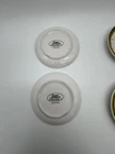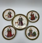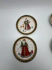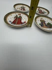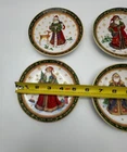 Set of four Certified International Christmas 5" dessert plates featuring Santa designs by Pamela Gladding. The plates are ceramic, round in shape, and multicolored. They are microwave and dishwasher safe. Each plate showcases a different Santa theme with gifts, birds, deer, and a bear. Made in China in 2003 as part of the Pamela Gladding product line. Ideal for Christmas occasions and collectors of festive dinnerware. They are in good shape. Look at pictures to see condition.
