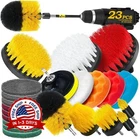 Juego De 23 Cepillos De Taladro Para Limpieza Kit De Esponja Color Amarillo NEW. Juego de accesorios de limpieza de taladro de 23 piezas y juego de accesorios de pulido con pulidora, incluye: 8 formas de cepillos de fregado de potencia de taladro medio, 9 estropajos de diferentes rigideces, 3 estropajos de esponja para pulir y 1 estropajo de lana blanca y respaldo de 4 pulgadas y 1 varilla de extensión. (EL TALADRO NO ESTÁ INCLUIDO) 8 formas de cepillos limpian su bañera, lechada, tapicería, superficie del baño, piso, azulejos, ducha, inodoro y alfombra, etc., las cerdas de nailon no rayarán las superficies de ellos. Estropajos de 9 piezas: perfectos para limpiar la cocina, el horno, la estufa, la placa de cocina, el fregadero, la sartén de hierro fundido, las ollas y las sartenes. 3 estropajos de esponja para pulir y 1 estropajo de lana blanca: se utilizan para encerar, pulir y sellar todo tipo de pinturas de capa, para limpiar y mejorar su ligereza; y para pulir los detalles del automóvil. Sistema profesional de pulido, pulido y acabado con almohadillas de espuma y lana. Corte y pulido eficientes de la capa de oxidación y los rayones más difíciles de los automóviles Instrucciones de instalación de la almohadilla: Instale una almohadilla en el respaldo y luego conecte el respaldo al taladro para usarlo ¡Atención! Consejo sobre el tamaño del producto: El diámetro de la biela que conecta el taladro es de 1/4 de pulgada. Antes de comprar, verifique si el taladro se ajusta a este tamaño (si no verifica el tamaño del taladro, puede haber una discrepancia). Si el producto no es adecuado para el taladro, comuníquese con nuestro servicio de atención al cliente a tiempo para organizar las devoluciones; admitimos todas las devoluciones no adecuadas. Se recomienda usar con otros productos de limpieza para obtener mejores resultados.