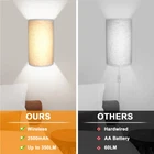 Battery Rechargeable Wall Sconce Materlal: iron/canvas Installation Method: magnetic suction Lumen: 150 -350lm Color Temperature: 3000K + 4000K + 6500k Input: 5V 2A Battery Life: over 20 H Charging Time: 2-3 hours (In charging: red light, Fully Charged: green light) Remote Control Battery: CR2025 Remote Control Range: 3-5M, 30° Package List: Strip Light *2 Canvas *2 Stand *2 Remote Control *2 Charging Cable *2 Screw Package *4 Manual *1 Simple Vintage Fabric Design: This rechargeable wall sconce is made from high quality linen craftsmanship, the unique fabric shade shines through a soft and non-glare light, simple and unique design suitable for most modern interiors. Rechargeable Battery Timer Wall Light: Built-in 4400mAh high-capacity battery, fully charged in 3-4 hours, can illuminate for 30 hours at the highest brightness. Remote control can set 0.5/1/3/6 hours auto off timer, perfect for bedside night light. High Brightness & Dimmable: Long LED multi-bead design wall light, the brightness can reach 150-350 lumens, which is 2-3 times brighter than other battery lights, you can adjust the brightness from 10%-100% using the remote control and touch. 3 Color Temperatures And & Colors: manual touch can adjust three color temperatures, RGB lights and brightness, remote control can adjust 16 RGB colors and 3 color temperatures to provide ambiance in resting, studying and entertaining scenes. Magnetic Connection: Our modern wall sconce without wires comes with wall sconces with strong magnets that attach vertically to the mounting plate, easy to install, no shadows, and convenient to charge at any time. Commonly used in bedroom, dining room, living room, hallway, also can be used as porch light.