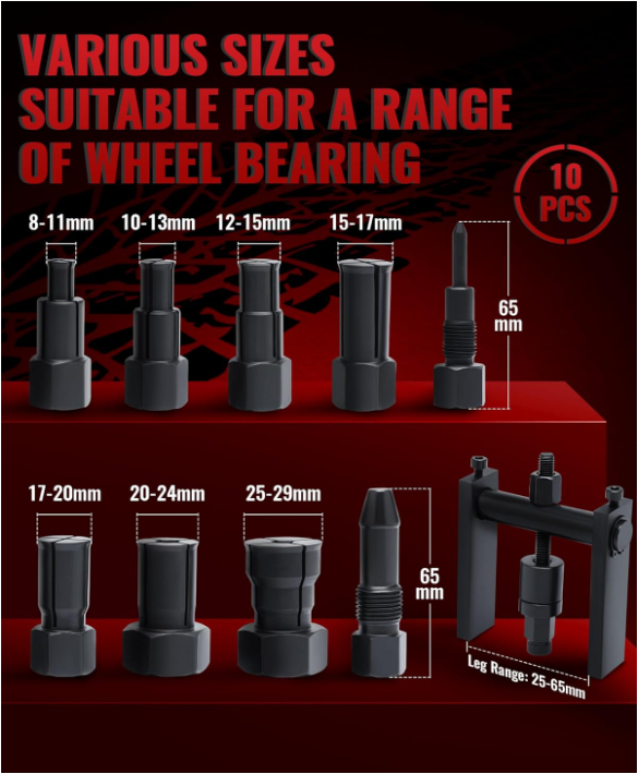 Juego de herramientas para la extracción de rodamientos,Kit extractor de rodamie Extracción de Rodamientos a Distancia: El extractor de rodamientos para ruedas de motocicleta es una herramienta especializada que permite extraer rodamientos de forma segura y sencilla desde la parte más difícil de alcanzar del cubo de la rueda. Su diseño garantiza que el cubo y el rodamiento permanezcan intactos durante el proceso de extracción. Juego Completo de Herramientas: Este extractor de rodamientos a distancia para la extracción de rodamientos internos de inserción a distancia incluye 7 pinzas de diferentes tamaños (de 8 mm a 25 mm), lo que lo hace versátil y adecuado para una amplia gama de rodamientos de rueda. Fácil de Usar: Nuestro juego de herramientas para la extracción de rodamientos piloto garantiza un ajuste perfecto mediante el apriete de los pernos, evitando que se aflojen durante la operación y reduciendo el riesgo de fallos. Ofrece una solución segura y fiable para sus necesidades. Fabricado para Durar: Nuestro extractor de rodamientos para motocicleta está fabricado con acero de aleación de primera calidad para una larga duración. El juego de extracción de rodamientos cuenta con varillas roscadas tratadas térmicamente y ennegrecidas que ofrecen excelente dureza, resistencia y durabilidad. Fácil de usar: Primero, inserte la herramienta en el anillo interior del rodamiento, enrosque el cabezal en el eje, abra la herramienta para engancharla al anillo interior y gire el eje para extraer el rodamiento. Es un proceso sencillo, rápido y fácil. SHIPPING: We offer FREE shipping on all orders! We ship within Three business days of payment, usually sooner. We use a selection of shipping services such as UPS, FedEx, USPS etc. We only ship to the lower 48 states, no APO/FPO addresses or PO Boxes allowed. Local pickups and combined shipping options are not provided at this time. FEEDBACK: Customer satisfaction is very important to us. If you have any problem with your order, please contact us and we will do our best to make you satisfied. Thank you for shopping with us!