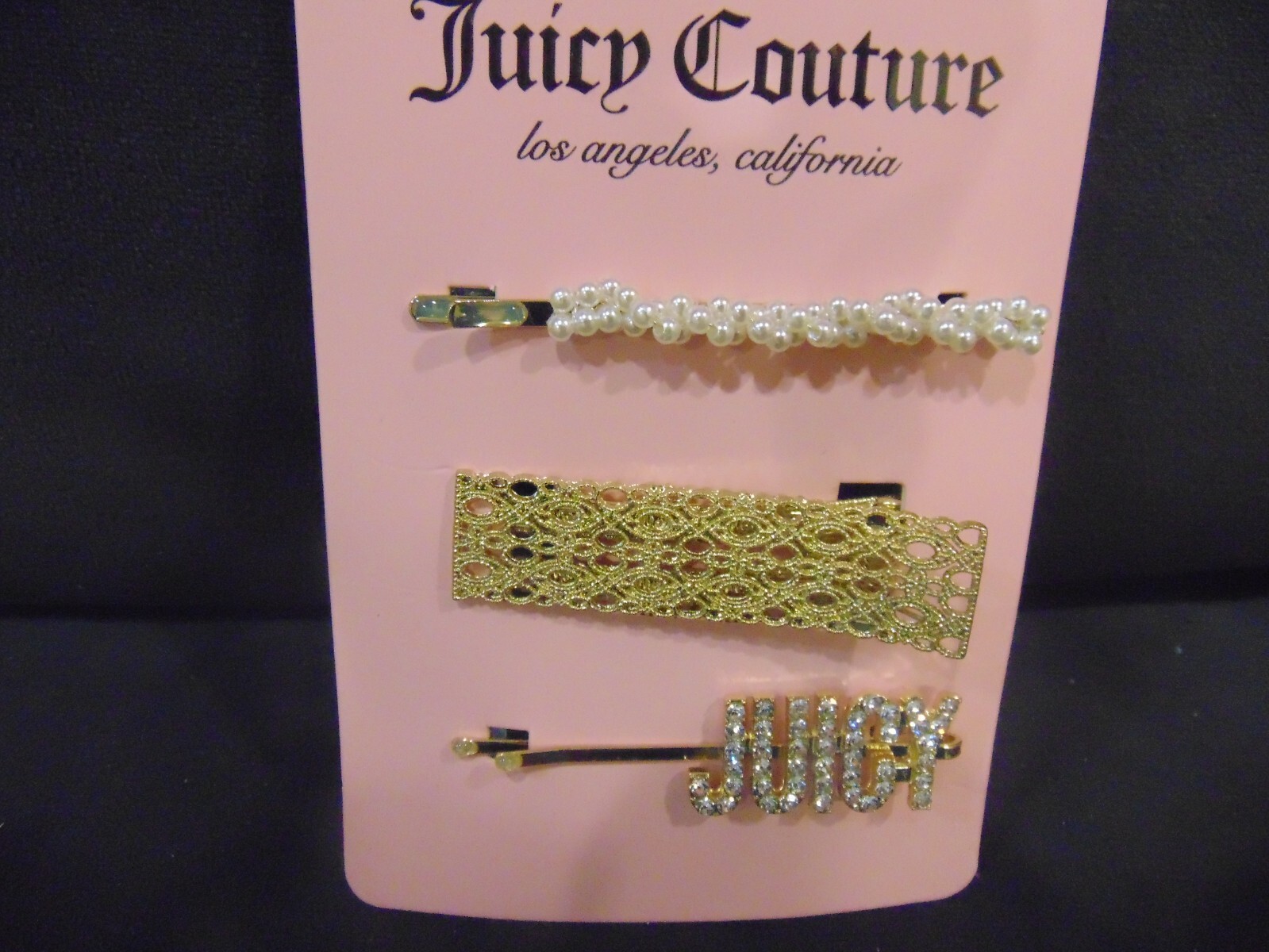 3 Pc Juicy Couture Bobby Pins Rhinestone and Faux Pearl Gold Tone Perfect for Any Type of Hair. Payment is due within 3 days of auction closing. Thanks Happy Bidding.