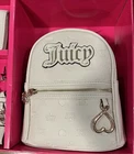 This Juicy Couture gift set includes a cream mini backpack, cardcase, and key chain, all adorned with the signature Juicy Couture logo. The backpack features a zip closure and adjustable faux leather straps, while the cardcase and key chain are perfect for keeping your essentials organized. The set is ideal for travel, casual outings, or formal events, and the lightweight design makes it easy to carry. The bag height is 8.5 inches, the bag width is 6 inches, and the bag depth is 3.25 inches, making it a great size for carrying your belongings. The hardware color is gold, and the handle/strap material is also faux leather. This set is a must-have for any Juicy Couture fan and is a great addition to any collection.