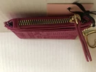 The BRAND NEW WITH TAGS Juicy Couture Hot Pink (Raspberry Tart) Card Case Zipper Heart Shaped Key Ring Fob Wallet is a stylish accessory designed for women. MSRP $35 Made from manmade material and featuring a gothic printed pattern, this wallet showcases a zipper accent, gold tone heart key ring, and the brand's logo. The compact size of 4.5 x 3 inches makes it ideal for carrying cards, coins, and keys with ease. Perfect for those who want to make a statement with their designer accessories, this wallet combines functionality with a touch of edgy style. Called the "Free Spirit" Card Case - DeBoss Logo w/Raspberry Tart Color This is Brand New With Tags - Gold tone hardware and inside coin area has the Juicy Couture Logos. This wallet fits up to 4 cards for quick and easy access. Designed for those that want to keep the bulk down but still need to keep hold of the essentials. Size: 4.5 inches Length by 3 inches in height. Comes from non-smoking home. Reminder: No Returns. Ask questions or for additional pictures. I am listing a lot of Cabbage Patch, Holiday items, crafts, collectible glass, Halloween, Christmas items, Waterford, Fairies, Department 56, Yankee Candle, PartyLite, Vintage Owls, Precious Moments, Lenox, Williams Sonoma, Rae Dunn, Pottery Barn, Pfaltzgraff, Fitz and Floyd, Hallmark, Old World Christmas, new and vintage toys, Disney, etc., plus more vintage clothing. Stop back often and save me to your “favorite saved sellers” and thank you for shopping with me!