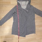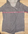 Juicy Couture Hooded Asymmetrical Cardigan Large Length: 30 inches Width(pit to pit) 22 inches Glitter Metallic Grey (looks just grey and in light or sunshine the metallic sparkles) Y2K style Hooded 61% Cotton 32% Polyester 7% Metal Raw Hem Open front Pre-Owned, has some pilling inside although once worn you cannot see it from the outside. See Photos