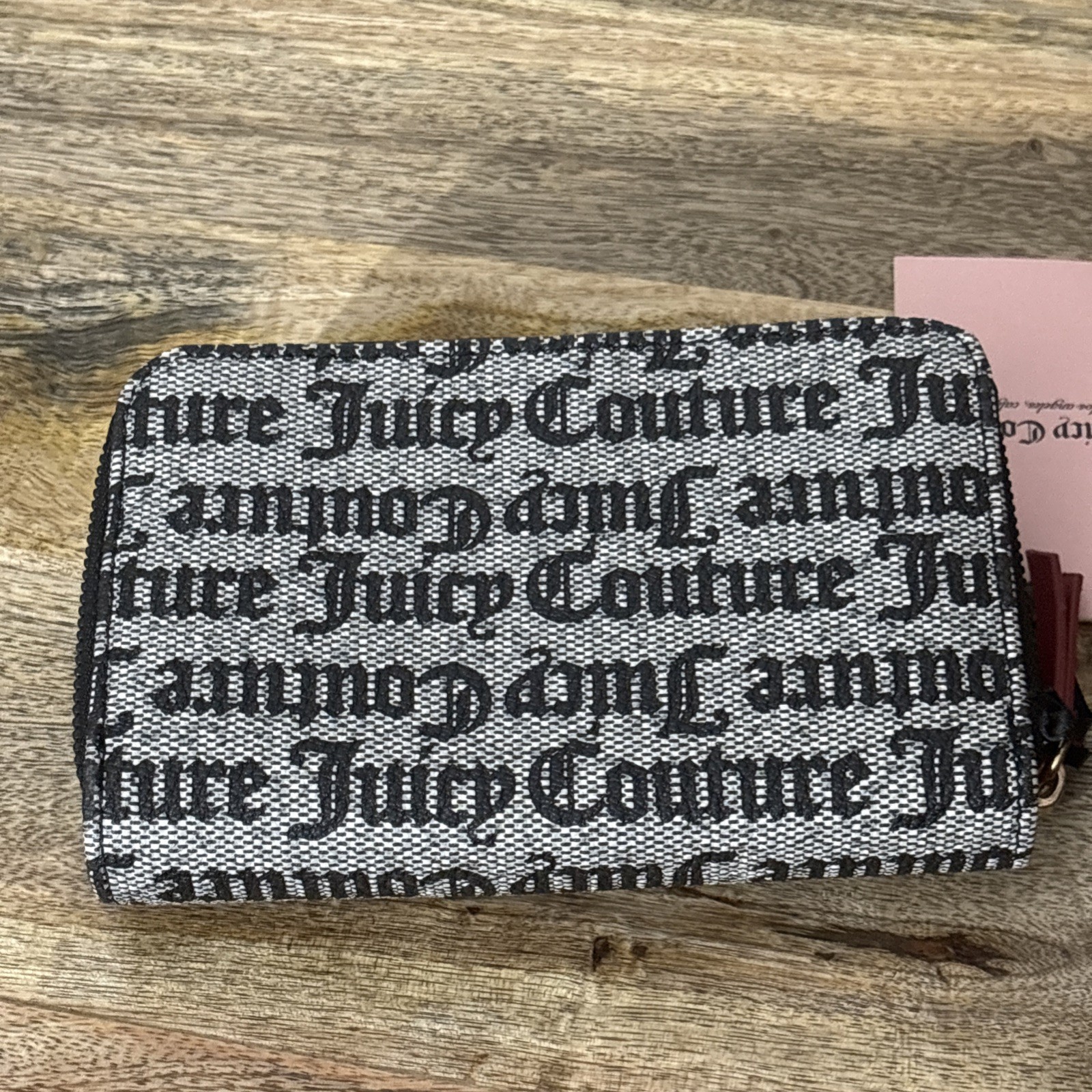 Brand new with tags Juicy Couture Love Never Dies Status Black Multi Compartments BiFold Wallet. Juicy logo with red heart on front. Holds credit cards and has a zipper compartment. Measures: 6” W X 4” T From a smoke-free home.