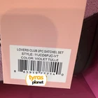 This beautiful Juicy Couture Lovers Club satchel gift set features a mid size satchel measuring 8" high x 8" wide x 3" deep with an interior slip pocket, satchel handles and a cross body strap. The mini satchel measures 6" wide x 4" high x 2" deep and also features satchel handles and a crossbody strap. NEW IN BOX