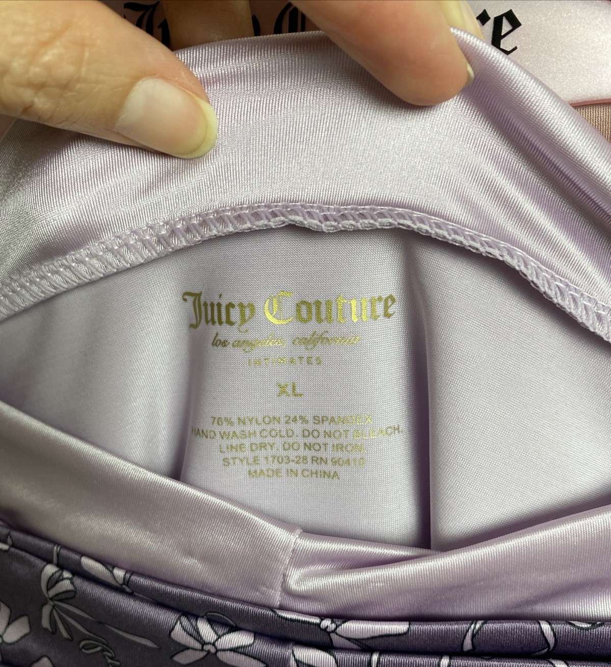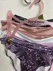 The Juicy Couture Panties 5 Pack in Pink Lavender White Floral features a bikini style with a mid-rise and no panty lines, perfect for an underwear collection. Made of a blended fabric of nylon and spandex, these panties are machine washable and lightweight for comfort. The floral pattern and pink color give them a feminine and playful look, ideal for everyday wear. With accents like the Juicy Couture logo, these panties offer a touch of designer style to any wardrobe. Please note that this has flaws. See pictures for more details