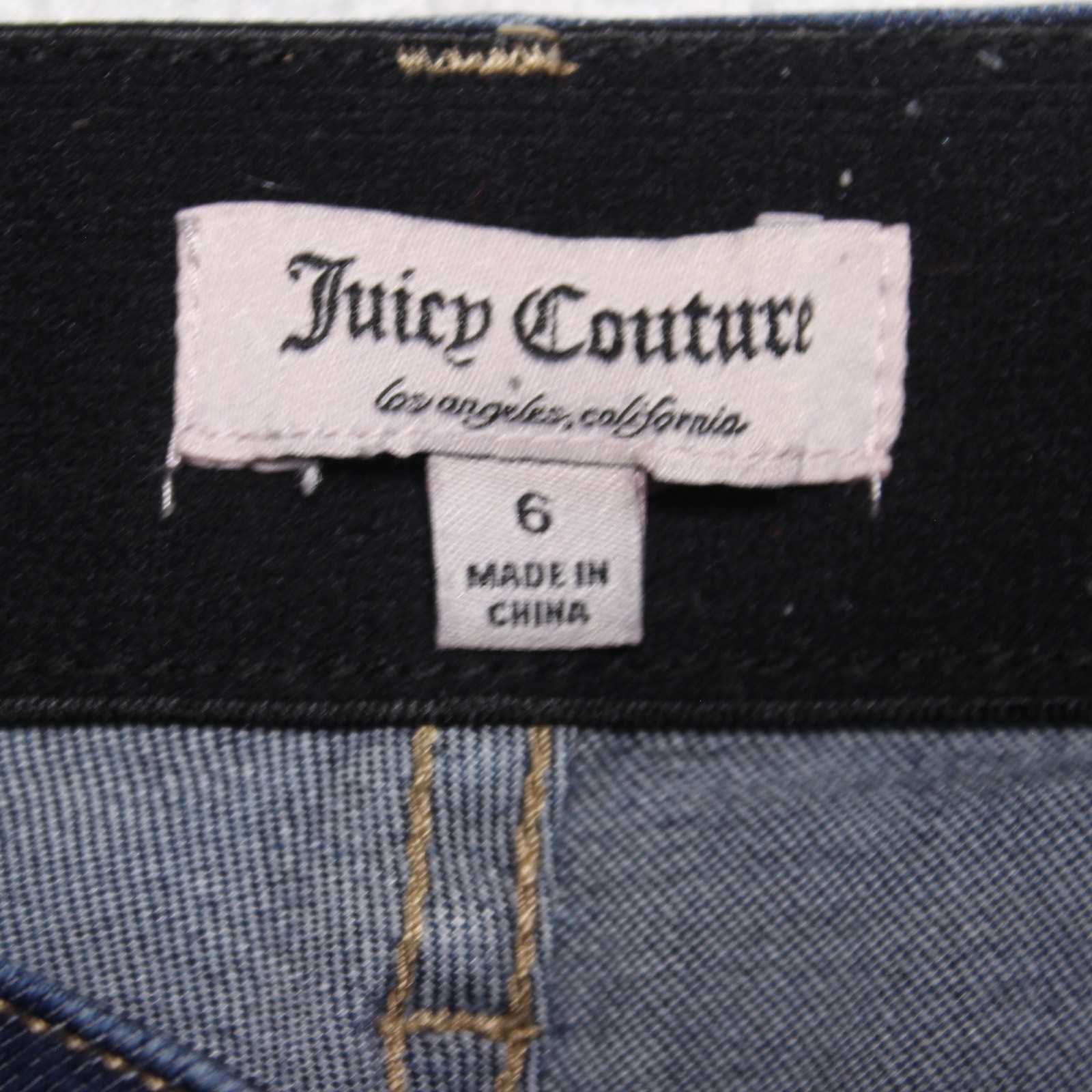 Elevate your casual style with these Juicy Couture skinny jeans in a classic dark wash. Designed for comfort and a flattering silhouette, these jeans feature a mid-rise fit with a slight stretch thanks to a cotton-blend fabric. Finished with a sleek metallic Juicy Couture Los Angeles logo patch on the back waistband. Size 6. Brand: Juicy Couture Size: 6 Fit: Skinny Rise: Mid-rise Color: Dark blue wash Material: 74% Cotton, 23% Polyester, 2% Rayon, 1% Spandex Features: Stretch fabric, 5-pocket design, button & zip closure, logo hardware Condition: Excellent pre-owned condition
