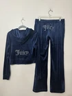 This is a Juicy Couture 2-piece tracksuit set for women in size M. The set includes a regal blue velvet jacket with long sleeves and matching pants. It is designed for activewear, featuring a designer 90s athleisure style. The set is ideal for gym training, walking, or cross-training in all seasons. The set is brand new with tags, and the retail price is $199.