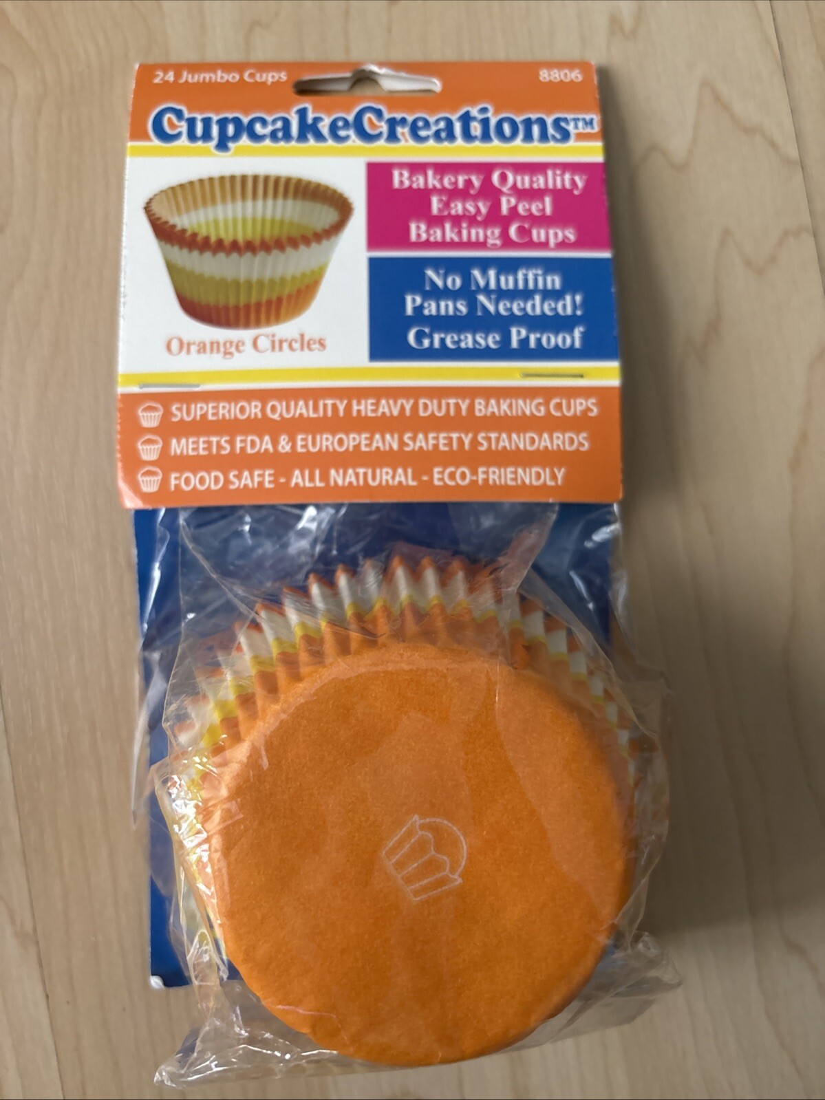 CUPCAKE CREATIONS JUMBO LINERS ONE SET “RETRO” with 25 liners ONE SET “ORANGE CIRCLES” with 24 liners Brand new!