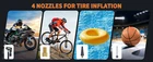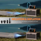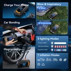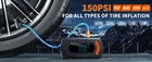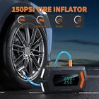 Product Description: 【 7-in-1 Jumper Box 】The portable jumper starter not only works for car emergency start at peak current of 6000A, also functions as tire inflator up to 150 PSI with instant display of tire pressure, air mattress pump or deflator up to 350 L/min, 2 LED light with 3 modes (flashlight, strobe, SOS), and portable power bank with TYPE-C cable 【 Car Battery Jump Starter 】Equipped with high-rate lithium battery, the jump starter can effectively start 10L Gas & 9.0L Diesel Engine and other 12V vehicles like motorcycles, cars, or lawnmowers. The upgraded smart jumper cable can safely start all engines with automatic protection against high or low temperatures, under voltage or over voltage 【 Blower Function】Added an separate pumping mode, soft air inflation for air mattress/pool floats, also supports reverse pumping for quick storage. The power pack comes with a larger diameter hose and 4 valve adaptors 【 Accurate Cordless Tire Inflator 】 The funcation of air pump for car tire takes just 60 seconds to inflate leaky tires from 32 to 36 PSI with accurate readings within 1% of the exact tire pressure. The air pressure reaches up to 150 PSI, offers 4 intelligent modes and nozzles to inflate: car mode, motorcycle mode, bicycle mode, and basketball mode 【 270° 2-LED Emergency Lighting 】The 2 LED light with 270°surrounded brightness for emergency lighting, 3 modes: Flash Light, Strobe Light and SOS Light to deal with all emergencies. It features a type-C port for its' charging and a 5V/2A USB output port for other devices. It not only will be car emergency kit, but also is a partner for camping, outdoors and travel 【 Multiple Protection 】Over 10 safety features to protect vehicles and batteries that includes over-charge, over-current, short-circuit, reverse-polarity, low-temp, high-temp, over-voltage, over-load, spark-proof, reverse-charge. No worry about safety or accidents