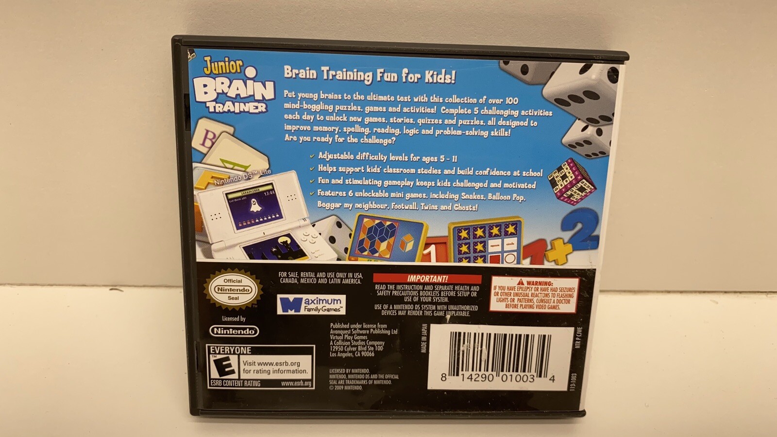 Junior Brain Trainer (Nintendo DS, 2009). Condition is Like New. Shipped with USPS First Class.