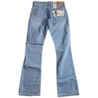 This is a pair of Junior's Levi's 515 Bootcut Jeans in size 4 with a light wash. The jeans feature a solid denim fabric with a mid-rise waist size of 28 inches and a 32-inch inseam. The closure is a combination of a zipper and button, accented with buttons, zippers, and a logo. Made from a comfortable cotton blend material with stretch, these regular fit jeans are designed with pockets and are suitable for casual wear.
