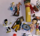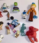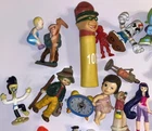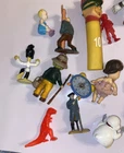 This vintage toy lot includes various small figures and parts from popular cartoon and TV characters such as Cracker Jack, TMNT, Hanna Barbera, Little Tikes, Fisher Price, and more. With over 22 pieces in the lot, there is something for collectors of all ages. These toys were manufactured in the 1970s to 2000s and are a great addition to any collection. The lot does not come with packaging, but each item is an original and licensed reproduction. Whether you are a fan of vintage toys or just starting your collection, this lot is sure to bring back memories of your childhood.