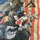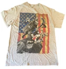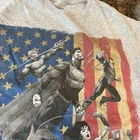 Justice League Charging T Shirt DC Comics Superhero Graphic Tee Gray US Flag L
