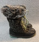 Justice Sparkle Snow Boots Girls Size 3 Gray And Blue With Faux Fur good condition any flaws are shown in photos SKU(A336)
