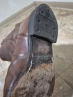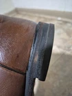A few scuffs and scratches, but no cracks. The outer soles look good. The rubber part of the heels are worn Crafted for the discerning individual, the Justin 3714 Men's Classic Brown Leather Roper Boot pairs timeless style with enduring quality. The rich brown leather upper provides a versatile look that transitions smoothly from casual to more formal occasions, while the robust leather outsole ensures lasting wear and a confident stride. Offering a comfortable fit in a size 9.5, this boot features a generous shoe width (EE) to accommodate a range of foot sizes. The revered Justin Boots brand guarantees a boot that marries craftsmanship with the rugged elegance synonymous with the American West.