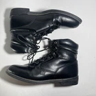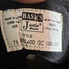 The Justin Black Leather Western Roper Riding Boots JBL400 in women's size 7.5 are stylish and versatile boots perfect for travel, activewear, or casual occasions. With a low heel height, lace-up closure, and ankle shaft style, these boots offer both comfort and support. Made from high-quality leather, these boots feature a fabric lining, rubber outsole, and foam insole for added comfort. The Western style and logo accents give these boots a unique and classic look that is suitable for all seasons. Justin Brands ensures top-notch quality and craftsmanship in these durable and fashionable boots.