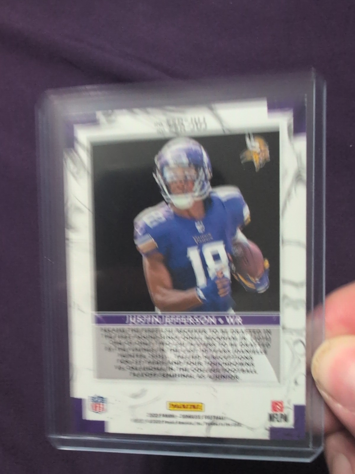 Elevate your sports trading card collection with the JUSTIN JEFFERSON 2020 DONRUSS OPTIC ELITE SERIES ROOKIES VIKINGS RC. This card showcases the exceptional talent of Justin Jefferson, a standout player from the 2020 NFL season. As part of the Donruss Optic Elite Series Rookies Vikings set, this card is a must-have for enthusiasts and collectors alike. Crafted in the United States, the card is a standard 3½" x 2½" size and features premium card stock material. It is an original piece, not autographed, and represents a valuable addition for those who appreciate the art of collecting or the legacy of football. With its sleek Optic parallel/variety and the prestige of being a rookie card, it holds a special place in any collection.