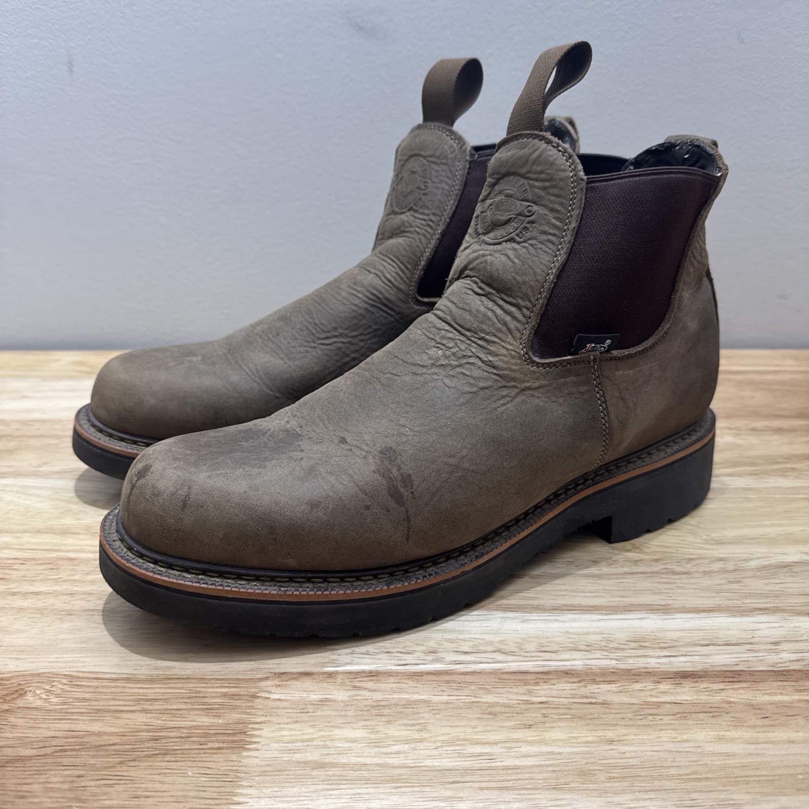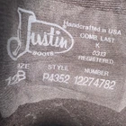 Men’s Justin Original Work Boot US Mens Size 12B Style P4352 Made In USA. In good condition. The left boot has some discoloration spots on the front toe area that could probably be cleaned off. They don’t have much wear other than that.