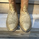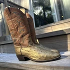 Please see the pictures for an accurate description. Same-day business shipping. When you go out into the town, everybody’s gonna look at your boots first! Thank you so much for your interest. If you have any questions, please feel free to ask. We have a pet-loving, smoke-free shipping home. The Vintage Justin Western Cowboy Ostrich Wingtip Boots are known for their quality and unique craftsmanship. Here are some key factors that contribute to their reputation: 1. **Material**: These boots are made from genuine ostrich leather, which is prized for its softness, durability, and distinctive texture. Ostrich leather is known for its unique quill pattern, giving each pair a one-of-a-kind appearance. 2. **Craftsmanship**: Justin Boots has a long history of producing high-quality footwear. The attention to detail in the stitching and construction of these boots reflects their commitment to craftsmanship, ensuring they are built to last. 3. **Design**: The wingtip design adds a stylish touch, making them suitable for both casual and formal occasions. The peanut brittle color offers a classic, warm tone that complements various outfits. 4. **Comfort**: Many users find Justin boots to be comfortable, especially after a break-in period. They often feature cushioned insoles and a design that allows for ease of movement. 5. **Durability**: Ostrich leather is known for its resilience, making these boots suitable for regular wear. The solid construction adds to their overall durability, allowing them to withstand various conditions. Overall, the Vintage Justin Western Cowboy Ostrich Wingtip Boots are a worthy investment for those seeking a combination of style, comfort, and quality. They are particularly appealing to cowboy boot enthusiasts and those looking for a distinctive pair of boots that stand out.