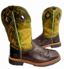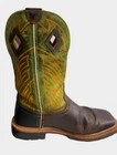 Department: Men Product Line: Justin Workboots Color: Green Theme: Biker, Cowboy, Motorcycle, Work Toe Shape: Square Toe Shoe Width: EE Type: Boot Pattern: Western Model: WK4970 Style: Western Features: Comfort Brand: Justin Boots Upper Material: Leather Closure: Pull On Accents: Embroidered US Shoe Size: 8
