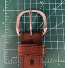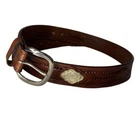 Preowned Justin's Tan Tooled leather Belt with silver plated accents Size 36 Intricate designs carved into the leather. Conchos: Decorative metal studs. Silver-plated buckles: Classic Western buckles with the Justin logo. Rawhide accents: Braided rawhide details for a traditional touch. Please see photos for measurements and imperfections