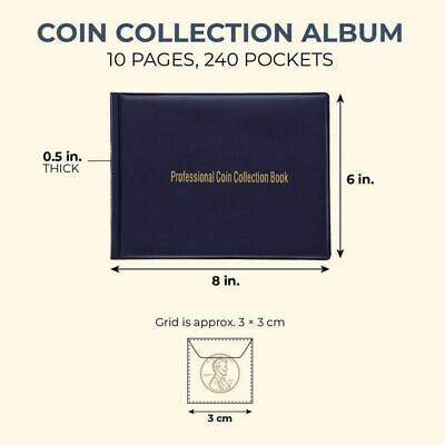 AccStation Package Includes 1 x Juvale Coin Collection Holder Album Book for Collectors, Holds 240 Coins Juvale Coin Collection Holder Album Book for Collectors, Holds 240 Coins Juvale Coin Collection Holder Album Book for Collectors, Holds 240 Coins Includes 1 dark blue 240-coin collectors album book Suitable for pennies, quarters, dimes, nickles, caps, tokens, medallions, badges, and more. Each coin grid is approx. 3cm by 3cm 10 pages 240 pockets coin collection book Blue album size: 8 x 6 x 0.5 Inches Includes 1 dark blue 240-coin collectors album book. Each coin grid is approx. 3cm by 3cm. 10 pages 240 pockets coin collection book. Blue album size: 8 x 6 x 0.5 Inches ⚠ WARNING: This product can expose you to chemicals including Di(2-ethylhexyl) phthalate (DEHP), which is known to the State of California to cause cancer. For more information, go to www.P65Warnings.ca.gov Product names are trademarks of the listed manufacturer or other owners, and are not trademarks of AccStation. The manufacturer does not necessarily endorse use of these products.
