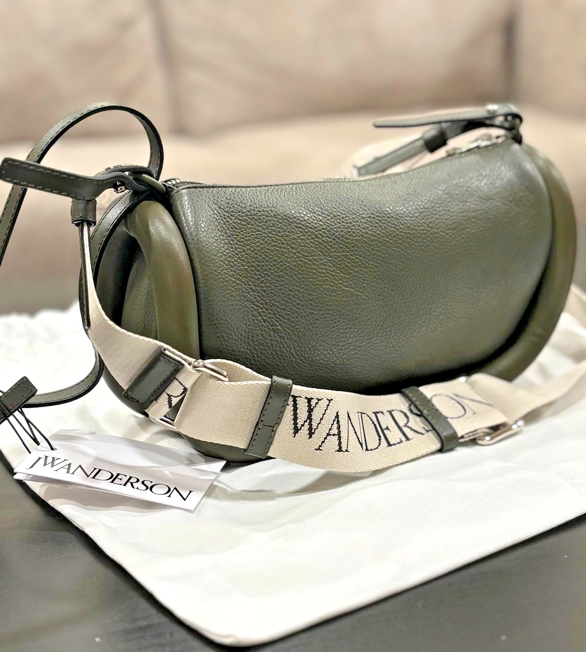 JW Anderson Bumper-15 Leather Crossbody – Deep Olive Handcrafted in Italy, the JW Anderson Bumper-15 Leather Crossbody embodies refined modernity and timeless design. Crafted from supple grained leather in a rich deep olive hue, this piece blends bold sculptural form with understated elegance. A distinctive silhouette, accented with polished silver hardware, reveals the brand’s signature contemporary aesthetic. The adjustable, detachable strap offers versatile wear — from effortless crossbody to chic shoulder styling — while the top zip closure ensures practicality without compromising sophistication. Finished with the JW Anderson designer logo and exquisite leather detailing, the Bumper-15 is more than an accessory — it’s a statement of individuality and luxury. Perfect for women who value craftsmanship, versatility, and modern elegance.