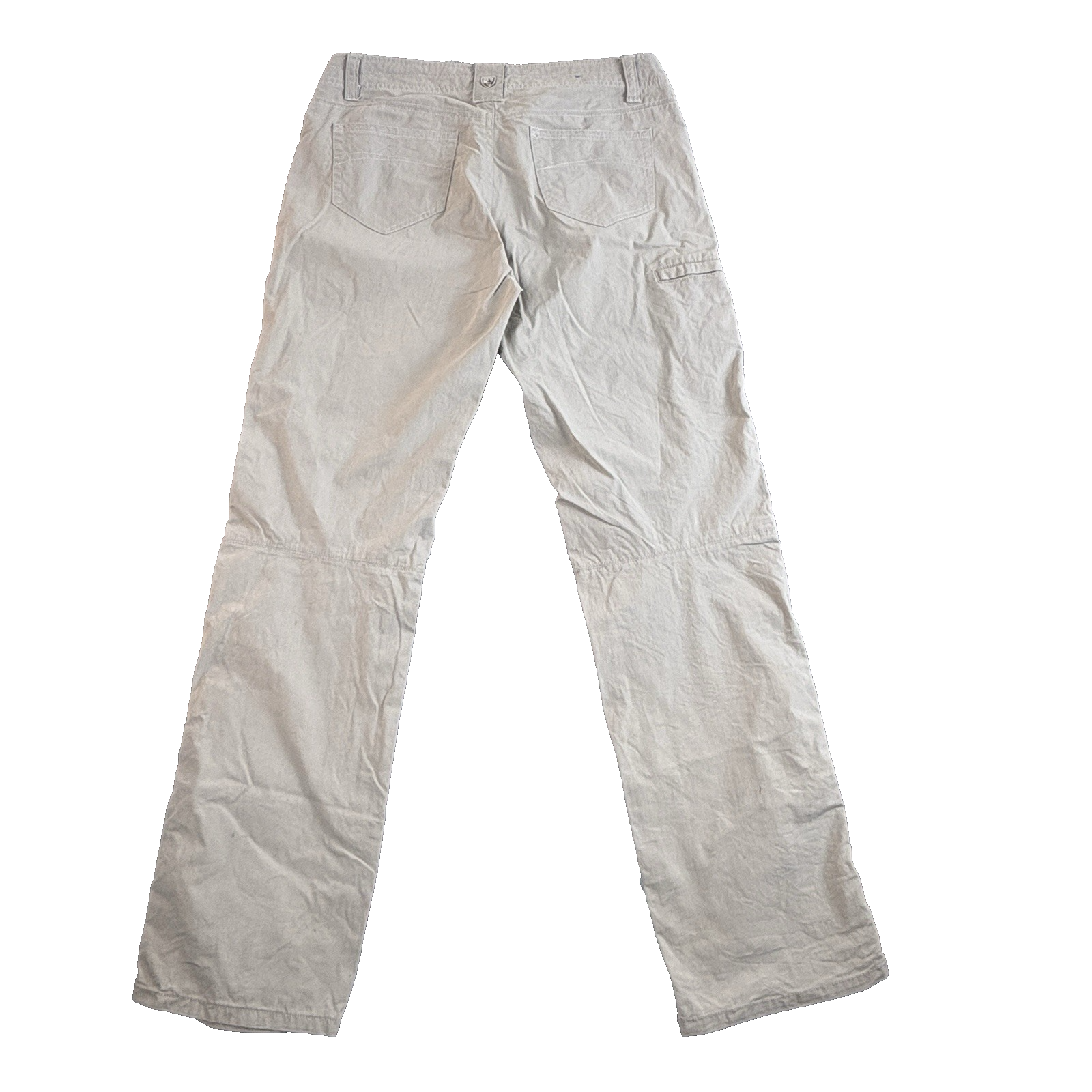 Designed for a functional outdoor aesthetic, these KUHL hiking pants balance durability and flexibility with a clean utility profile built for movement and all-day wear. Cotton stretch fabric supports comfort and mobility during active use Convertible roll-up pant legs with snap tabs allow adjustable wear Articulated seam construction enhances range of motion Multiple utility pockets provide practical storage on the go Pairs well with hiking boots, trail sneakers, or casual outdoor layers Preowned – Good. Fabric maintains solid structure with intact stitching throughout. Color listed as beige may appear lighter or warmer depending on lighting. Ink stain present inside one pocket only and not visible when worn or from the exterior Price adjusted for condition Flat waist: 16 in Length: 40 in Rise: 8 in Inseam: 31.5 in Leg opening: 8 in All measurements are approximate and may differ slightly than tags. See photos. NoDealLeftBehind is proud to offer this piece. Questions always welcome. Follow NoDealLeftBehind for new finds and fresh listings added regularly. #kuhl #hikingpants #outdoorwear #utilitypants #womensactive utility, outdoor, hiking convertible kuhl womens hiking pants roll up utility outdoor beige size 8 cotton stretch