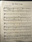 This vintage 1923 San Francisco sheet music titled "ALL NIGHT LONG" is a must-have for any advanced pianist who loves musicals. The piece features beautiful black cat art and is in excellent shape for its age. It was printed in the United States and is in oz unit type. The sheet music is perfect for anyone who wants to add a touch of nostalgia to their music collection. It belongs to the category of vintage and antique sheet music and is sure to be a conversation starter. Get your hands on this rare piece of history today!