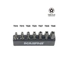 Five-point head and hole for security fasteners This set matches for most standard tamper resistance star 5-point screws as opposed to the common 6-point Mercedes, Porsche, Volvo some Ford and Chrysler cars/trucks use 5-point fasteners of transmissions, air sensor or injector pumps 1/4-inch shank hex bits in sizes: TS10, TS15, TS20, TS25, TS27, TS30, TS40