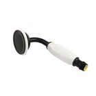 Relax and enjoy the soothing nature of the Victorian hand shower. Its striking design and premium matte black finish provides a long lasting and warm touch to your bathroom ensemble. A matching finish hose and elbow are sold separately for your convenience. High quality brass and porcelain construction Standard 1/2-14 NPSM connection 1.8 GPM/6.8 LPM hand shower flow rate at 80 PSI Overall size: (L)7" x (W)2-5/8" x (H)2-3/16" Single spray function Full spray pattern 49 water jet channels