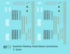 Item is one set of Z scale water slide decals. These decals contain material for lettering gold lettered Southern Railway hood diesel locomotive. Some sets can letter multiple models, please see the pictures to know what all is included. This set includes one decal sheet as shown. This set was made by K4 Supply Co. These decals are new production, with new artwork created by us. They are printed using a precise, 1200 DPI printing process and are among the sharpest model decals on the market. Sets include the decal sheet or sheets shown, and a copy of the lettering diagram shown if applicable. We combine shipping. Multiple items must be purchased in the same transaction for any applicable multi-item discounts to apply. Please click "Add To Cart" on every item you wish to purchase from me before paying to get any advertised discount. International shipping is available both through the Global Shipping Program or directly via USPS. If no USPS international shipping price is listed on an item, please buy it through the Global Shipping Program or contact me for a rate quote. Non-USA orders will be summarily cancelled if a purchased item has no international shipping rate specified and no shipping quote is first obtained. I will try to answer any questions you have, provided they relate to the item at hand, so please, ask away!! K4 Item #K4-SOUHD-220
