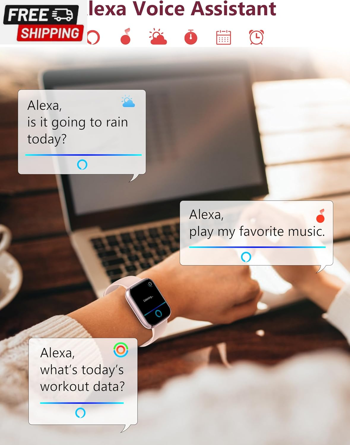 Absolutely love this smartwatch! The large 1.83" screen is crisp and responsive, making calls and tracking fitness effortless. Alexa integration is super handy, and the IP68 waterproofing means no worries during workouts or rain. Battery life impresses, lasting days on a single charge. The heart rate and sleep tracking are accurate, and the 100+ sports modes keep me motivated. Fast shipping, great customer support, and the 30-day guarantee gives peace of mind. Perfect for both Android and iOS usersโhighly recommend!