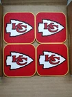 KANSAS CITY CHIEFS NFL DRINK COASTERS FOOTBALL 3.5" .2" SET 4 HEAT RESISTANT BAR