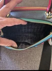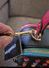 BRAND NEW WITH TAG KARL LAGERFELD SIMONE STUDDED LEATHER CAMERA BAG HAS DIFFERENT COLOR STUD BALLS ON THE FRONT KARL LAGERFELD PARIS LOGO IN GOLD AND A METAL GOLD SQUARE WITH DIRFFERENT COLOR PINKS. DOUBLE TOP ZIP CLOSURE GOLD-TONE HARDWARE ONE OUTSIDE SLIP POCKET, TWO INSIDE CARD SLOTS REMOVABLE ADJUSTABLE STRAP HAS KARL LAGERFELD WRITTEN ON LOBSTER CLASPS THE STRAP IS PINK AND HAS KARL LAGERFELD WRITTEN ON IT THE ZIPPER PULLS HAVE GOLD HARWARE ON THEM WITH KARL LAGERFELD ON IT TOP HANDLE DROP IS 3.5" STRAP MEASURES APPROXIMATELY 15"-25" L BAG MEASURES APPROXIMATELY 8" W × 5" H × 4" D RETAILS FOR $228.00
